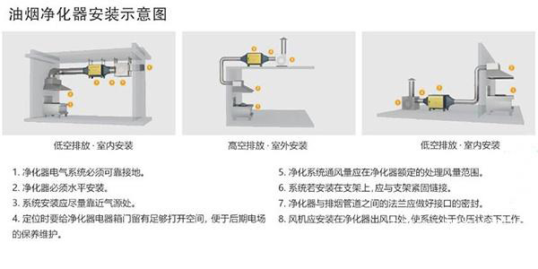 8、確保安全生產,油煙凈化器規定能與離心風機連動,即油煙凈化器盲目跟風一機多另外電源開關;假如不可以連動的,應當保證在起動油煙凈化器以前務必先起動離心風機運行10分鐘,關閉設備先要關閉油煙凈化器后再停離心風機。