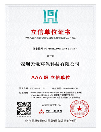 天瀧環保擁有多家專業機構認證證書包含了:CEP環境保護認證,設備第三方專業機構檢測認證,同時公司獲得了ISO9001管理體系認證,CE歐盟認證等多項權威證書。同時自主研發的產品多達幾十件均有專利證書,信用3A認證,太平洋保險合作伙伴,中國節能產品,環保設備稱號等。