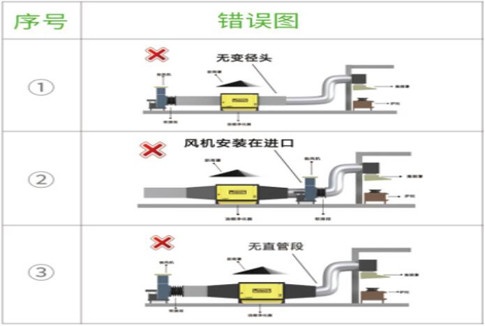 2、風(fēng)機(jī)安裝在進(jìn)口——改良方法:要求風(fēng)機(jī)安裝在凈化器后,讓風(fēng)機(jī)處于抽風(fēng)狀態(tài),切勿讓風(fēng)機(jī)安裝在凈化器前面。